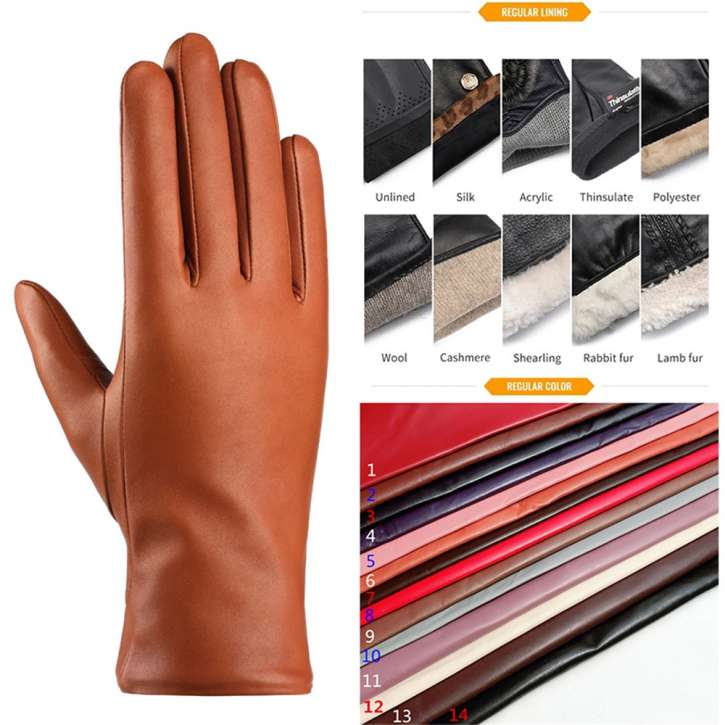 Model glove material: Aniline lambskinModel glove item number: NS280Stitching: machine sewingSize: S, M, L, XL, XL
